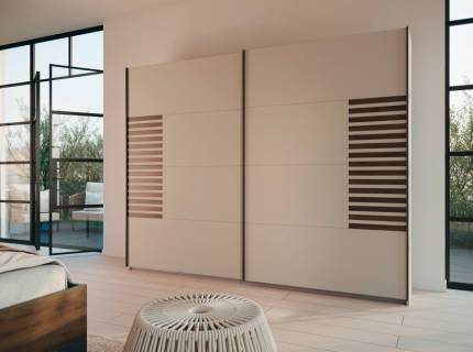 Dulap cu usi glisante BAREA 271x210x62cm champagne + stejar Atlantic dark, maner gri metalic