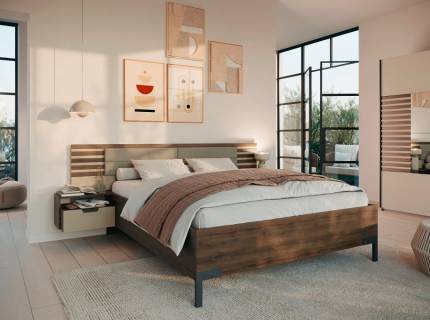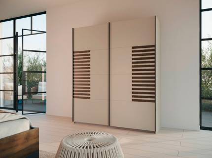 Dulap cu usi glisante BAREA 181x210x62cm champagne + stejar Atlantic dark, maner gri metalic
