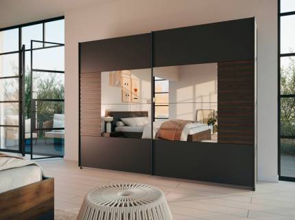 Dulap cu usi glisante BAREA 226x210x62cm gri metalic + stejar Atlantic dark - oglinda, maner gri metalic
