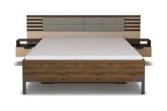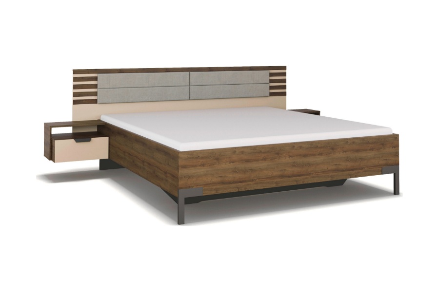 O portiune centrala din tablia patului este tapitata cu material textil.