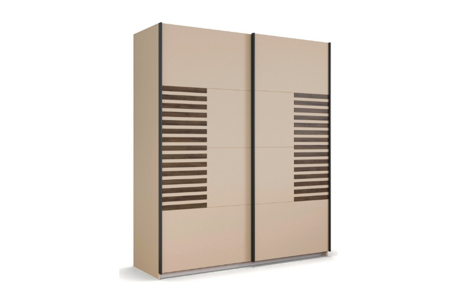 Dulap cu usi glisante BAREA 181x210x62cm champagne + stejar Atlantic dark, maner gri metalic