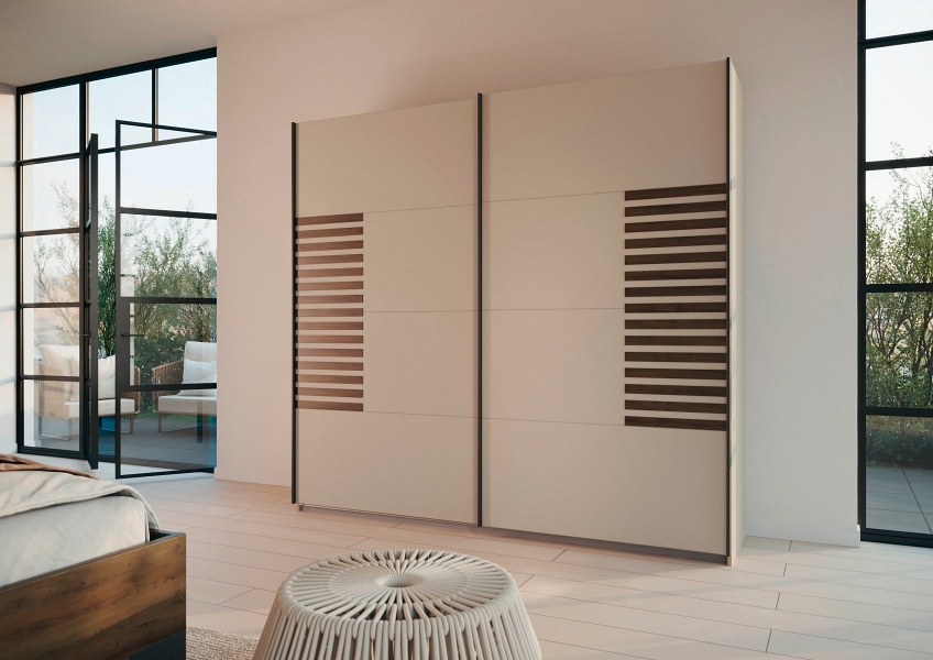 Dulap cu usi glisante BAREA 226x210x62cm champagne + stejar Atlantic dark, maner gri metalic