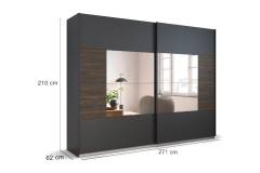 Dulap cu usi glisante BAREA 226x210x62cm gri metalic + stejar Atlantic dark - oglinda, maner gri metalic
