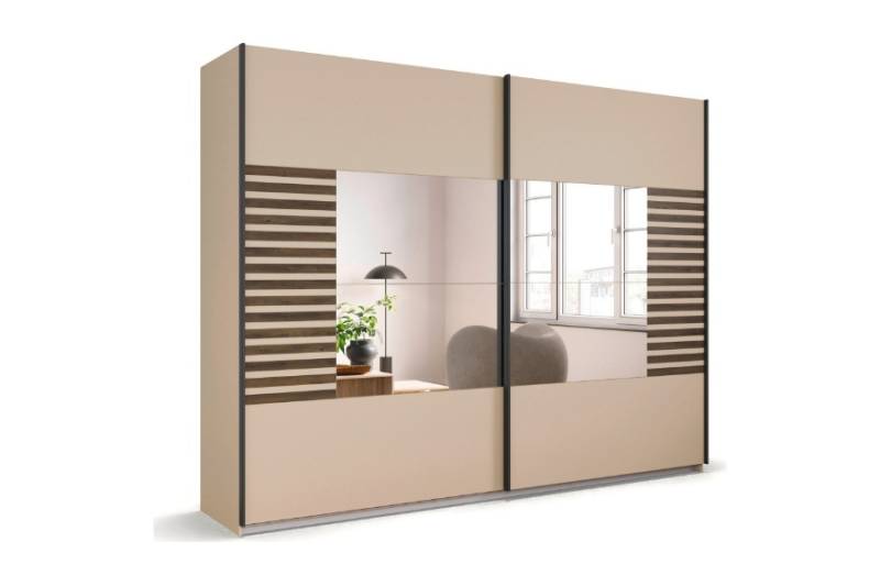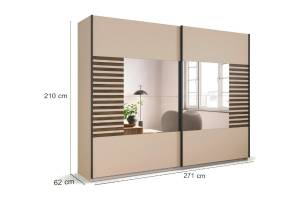 Dulap cu usi glisante BAREA 271x210x62cm champagne + stejar Atlantic dark - oglinda, maner gri metalic