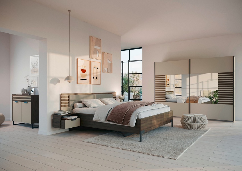 Nuanta: champagne + aplicatii stejar Atlantic dark/ oglinda