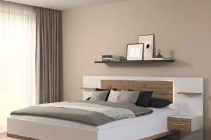 Cadru pat cu noptiere incorporate BOSTON EXTRA 160 / 180cm alb alpin/ stejar Artisan