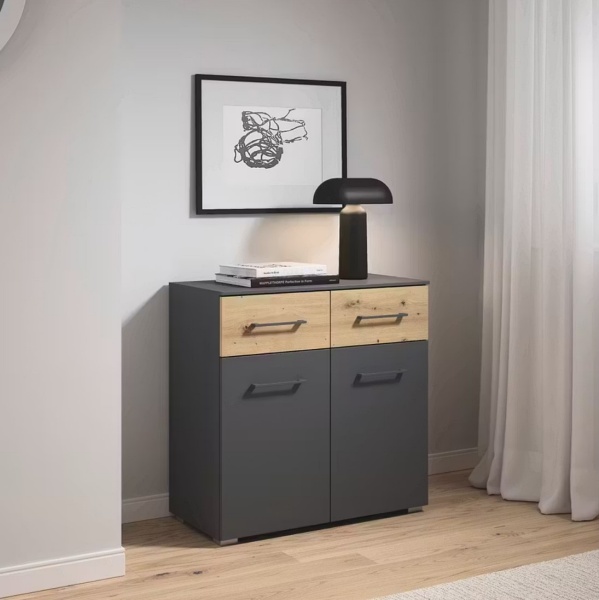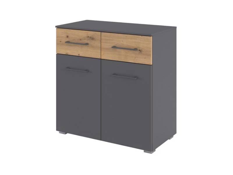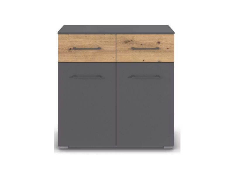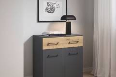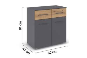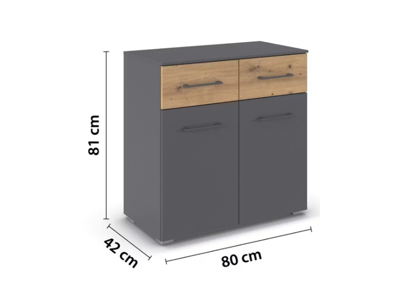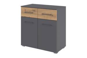 Comoda cu 2 usi si 2 sertare BOSTON EXTRA 80x81x42cm gri metalic/ stejar artisan