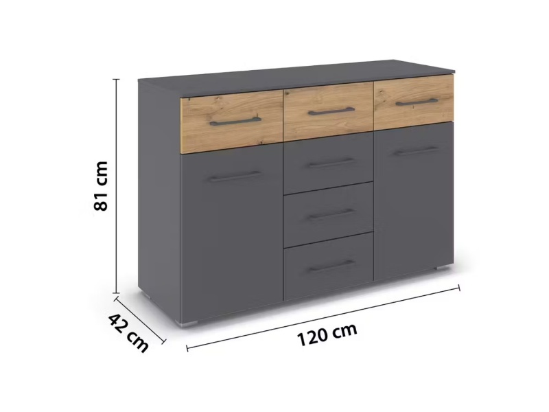 - 120 / 81 / 42 cm (2 usi + 6 sertare)