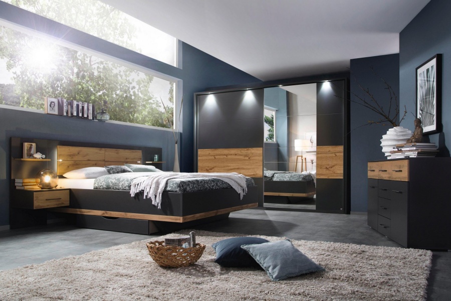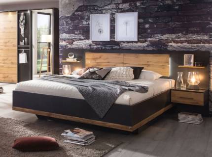 Dormitor XL gri metalic/ stejar artisan BOSTON EXTRA