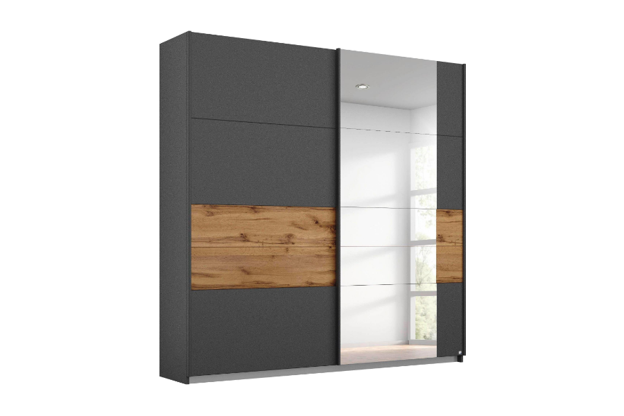 Dulap cu usi glisante BOSTON EXTRA 181x210x62cm gri metalic/ stejar - oglinda, maner gri metalic