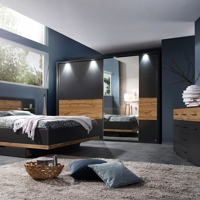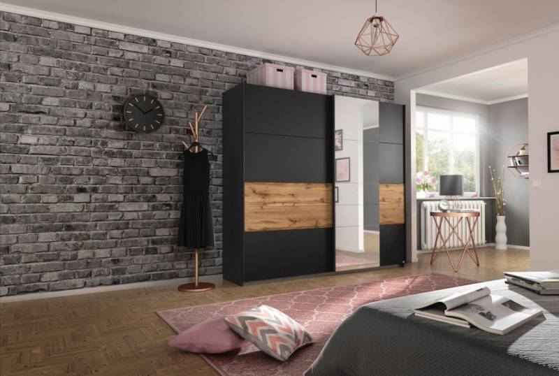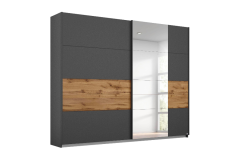 Dulap cu usi glisante BOSTON EXTRA 226x210x62cm gri metalic/ stejar - oglinda, maner gri metalic