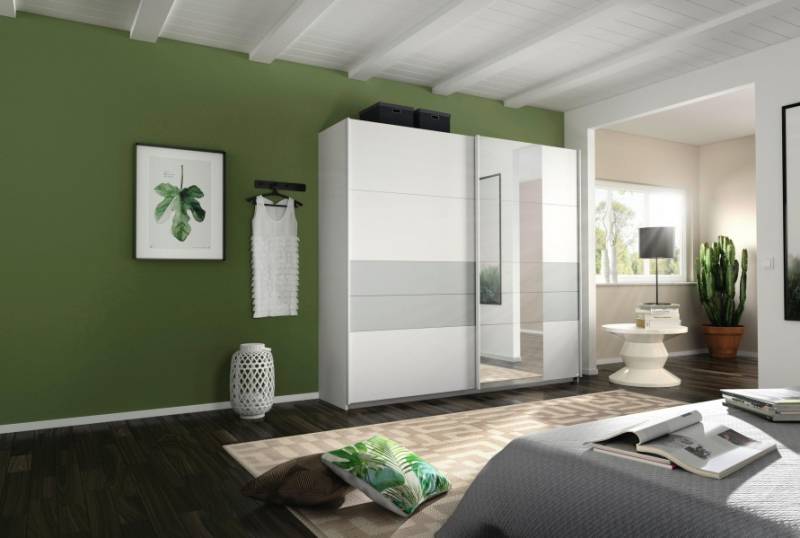 Dulap cu usi glisnate BOSTON EXTRA 226x210x62cm alb alpin/ silk grey - oglinda, maner alb alpin