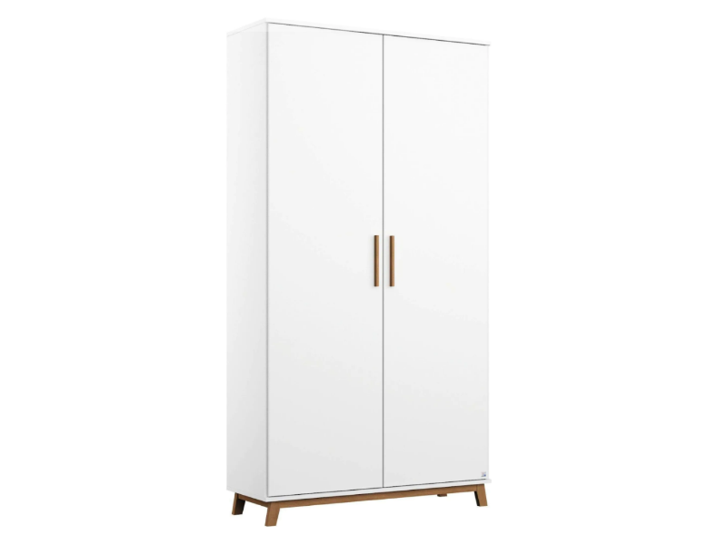 Dulap cu 2 usi cu balamale CARLSSON 92x203x53cm alb alpin, manere stejar