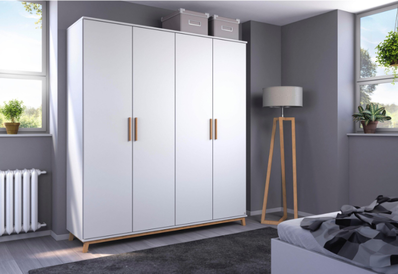 Dulap cu 4 usi cu balamale CARLSSON 181x203x53cm alb alpin, alb alpin, manere stejar