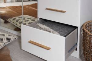 Dulapul vă pune la dispoziție un spațiu generos pentru depozitarea articolelor vestimentare, păstrându-le organizate și mereu la îndemână în dormitor.