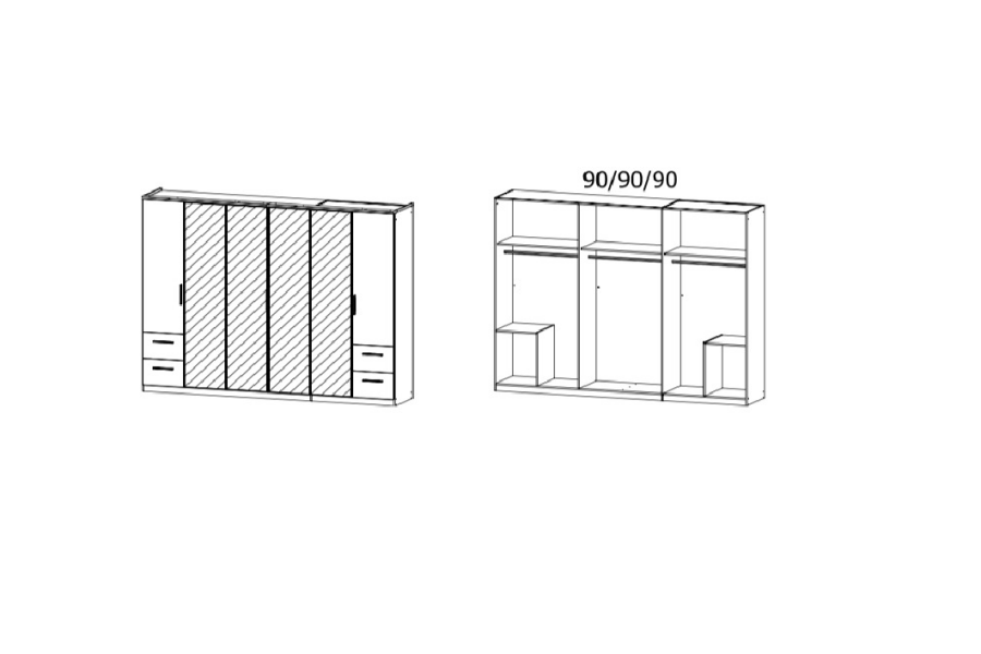 - 271 / 212 / 58 cm (6 usi + 4 sertare)