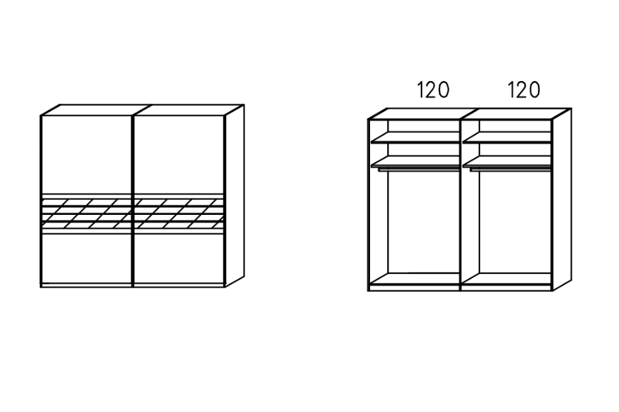 - Dulapul are incluse 2 polite si 1 bara pentru umeras pentru fiecare compartiment, in total 4 polite si 2 bare pentru umerase de 117x50cm.