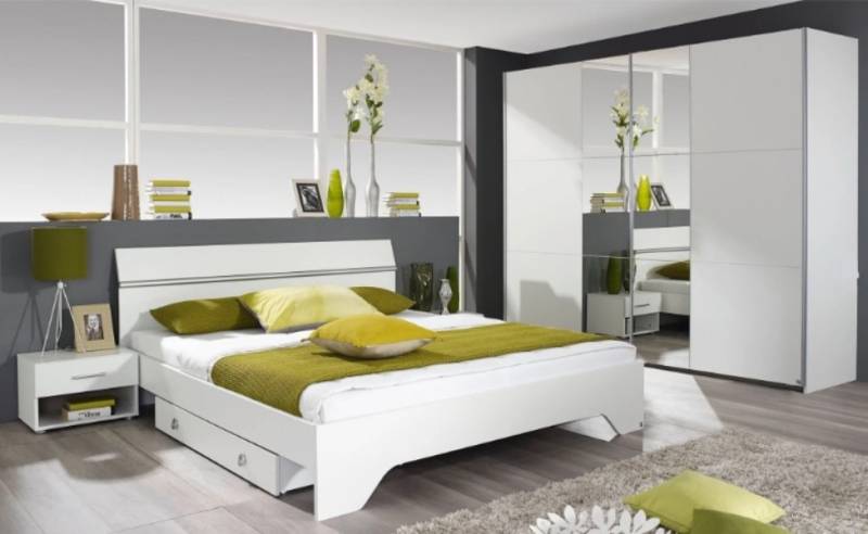 Cadru pat + 2 noptiere alb alpin (180x200cm) FELLBACH
