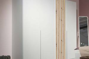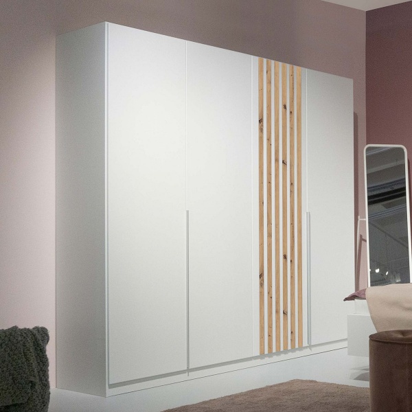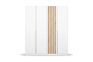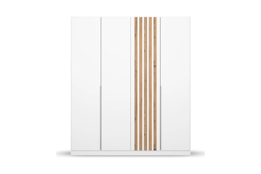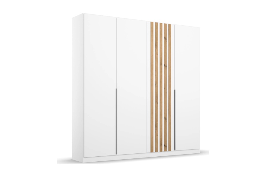 Dulap cu 4 usi cu balamale LAMELLA 181x210x54cm alb alpin/ stejar artisan, manere aluminiu
