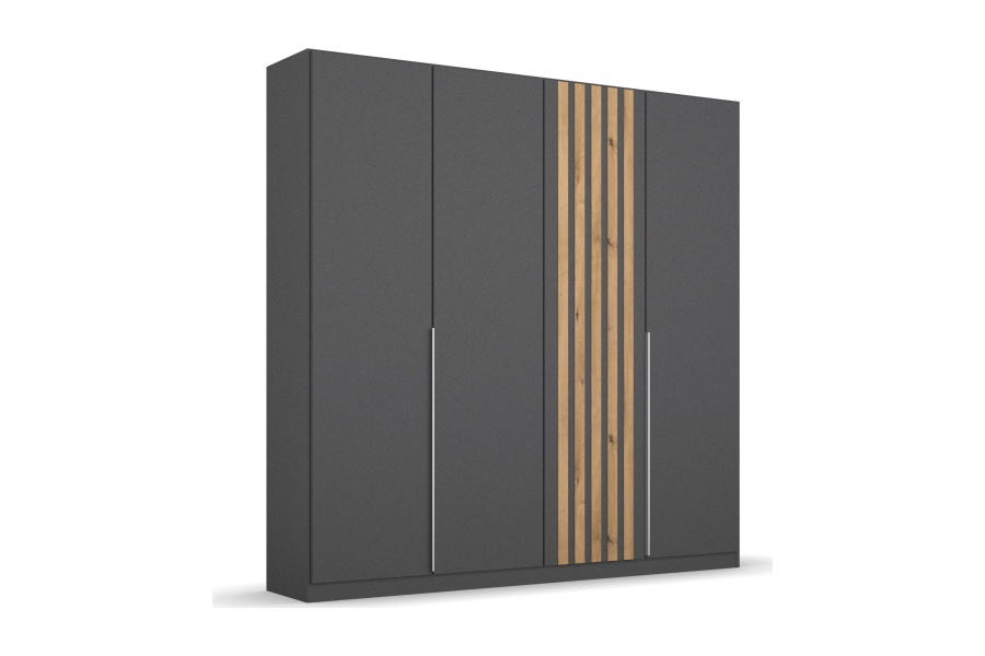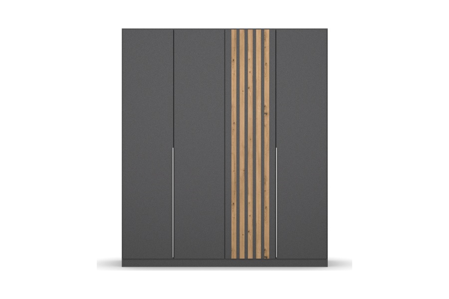 Dulap cu 4 usi cu balamale LAMELLA 181x210x54cm gri metalic/ stejar artisan, manere aluminiu