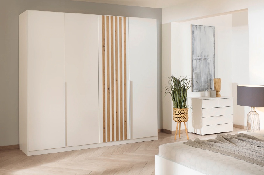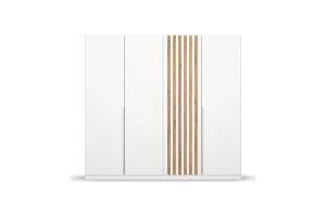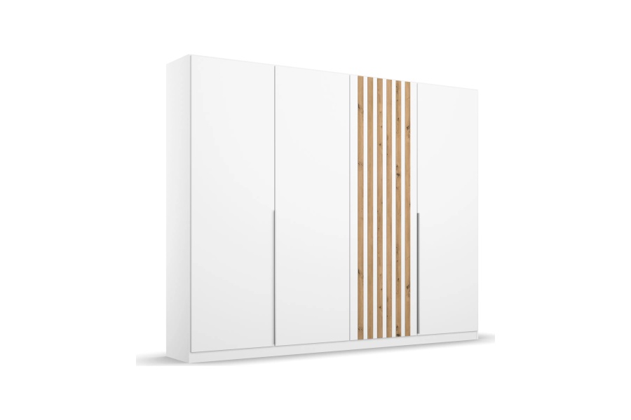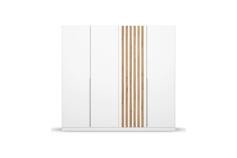 Dulap cu 4 usi cu balamale LAMELLA 226x210x54cm alb alpin/ stejar artisan, manere aluminiu