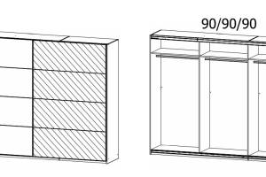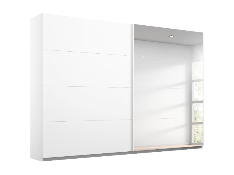 Dulap cu usi glisante MEMPHIS 271x210x62cm alb alpin/ oglinda, maner aluminiu