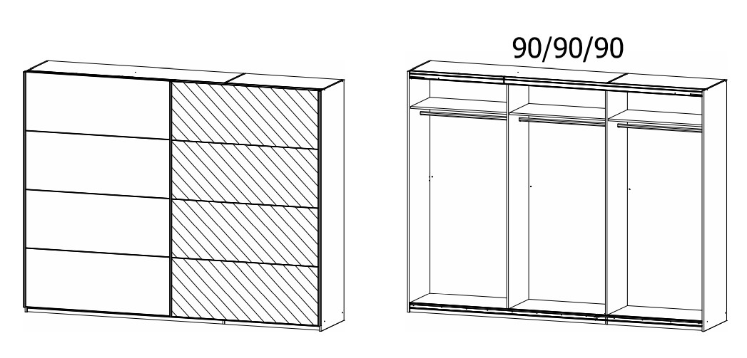- Dulapul are inclusa 1 polite si 1 bara pentru umeras pentru fiecare compartiment, in total 3 polite si 3 bare pentru umerase de 88x48cm.