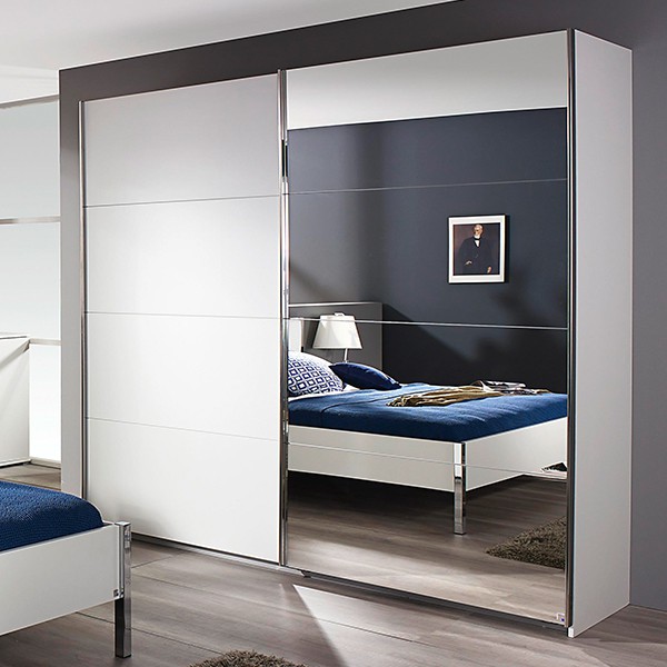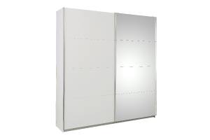 Dulap cu usi glisante MOITA 181x210x62cm alb alpin/ oglinda, maner crom