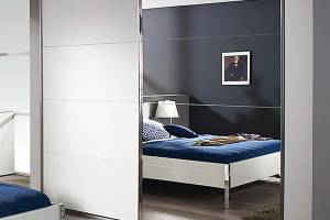 Dulap cu usi glisante MOITA 271x210x62cm alb alpin/ oglinda, maner aluminiu