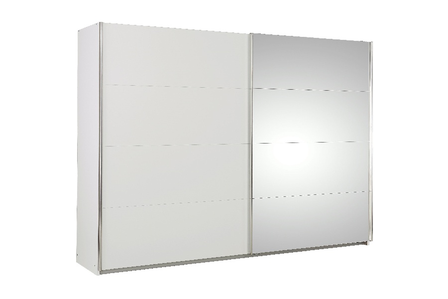 Dulap cu usi glisante MOITA 271x210x62cm alb alpin/ oglinda, maner aluminiu