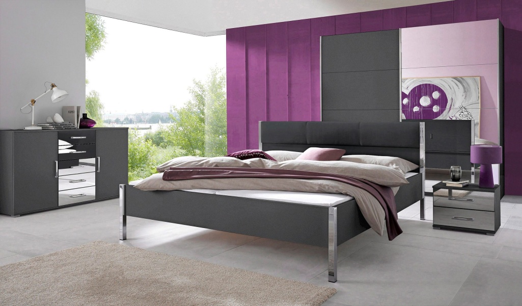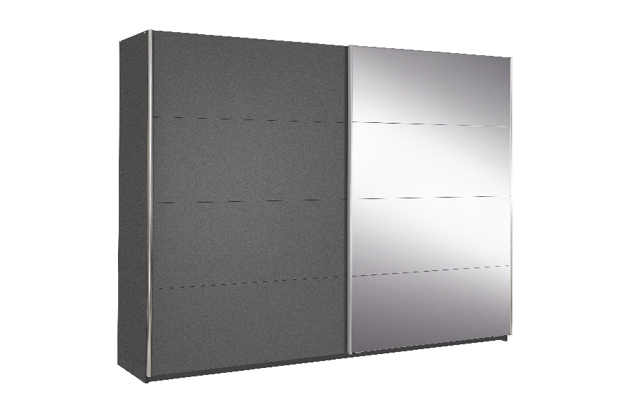 Dulap cu usi glisante MOITA 271x210x62cm gri metalic/ oglinda, maner aluminiu