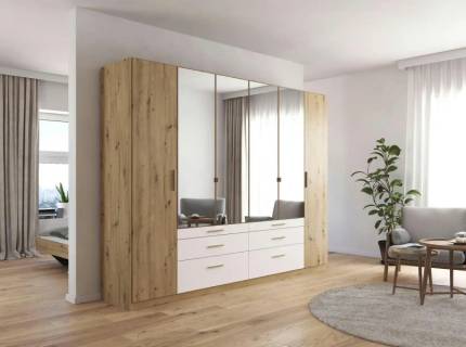 Dulap cu 6 usi cu balamale si 3 sertare MOSBACH 226x210x54cm stejar Artisan/ alb alpin