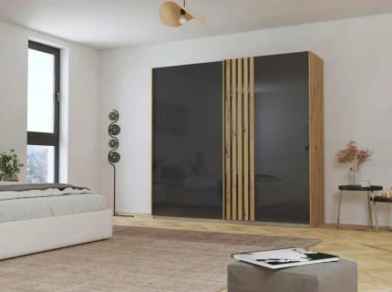 Dulap cu usi glisante MOSBACH 271x210x62cm stejar Artisan/ sticla basalt