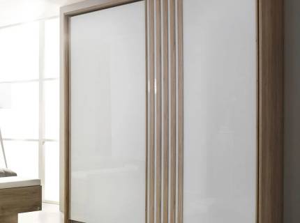 Dulap cu usi glisante stejar MOSBACH 226x210x62cm sanremo/ sticla alba