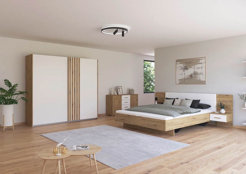 Dormitor L stejar Artisan/ alb alpin MOSBACH