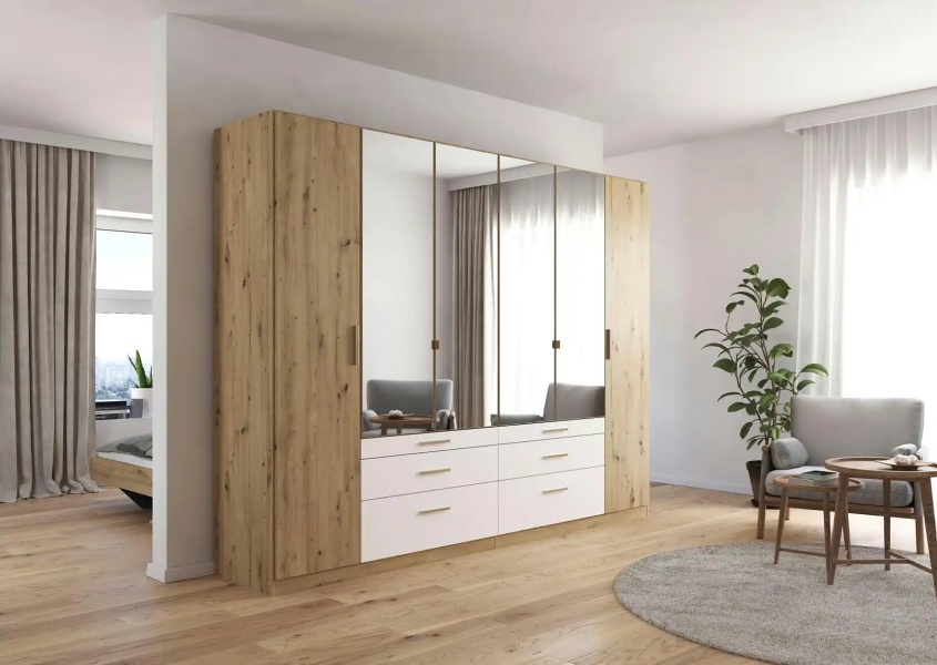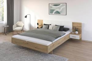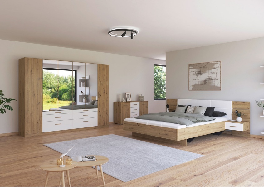 Dormitor MINI stejar Artisan/ alb alpin + oglinda MOSBACH