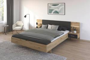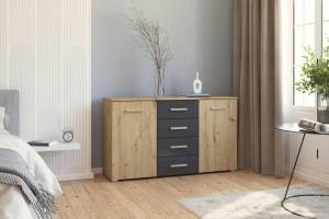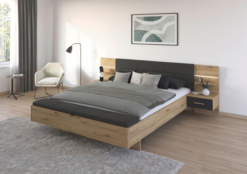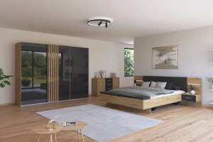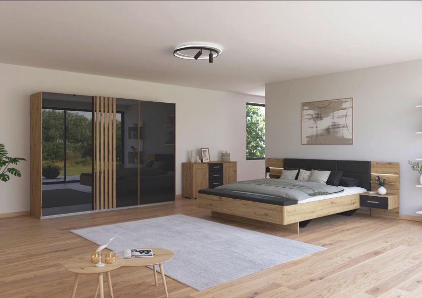 Dormitor XL stejar Artisan/ sticla basalt + gri metalic MOSBACH