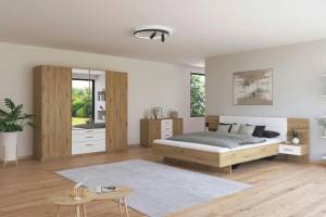Dulap cu 6 usi cu balamale si 3 sertare MOSBACH 226x210x54cm stejar Artisan/ alb alpin
