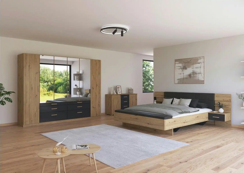 Dulap cu 6 usi cu balamale si 6 sertare MOSBACH 271x210x54cm stejar Artisan/ gri metalic