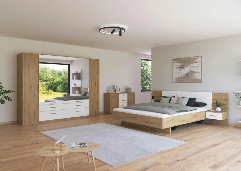 Dulap cu 6 usi cu balamale si 6 sertare MOSBACH 271x210x54cm stejar Artisan/ alb alpin