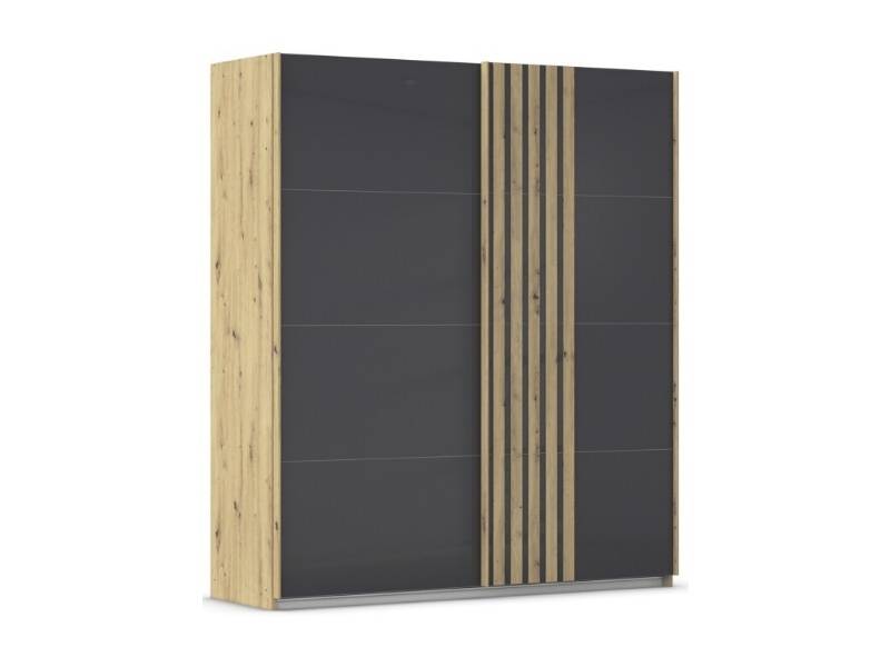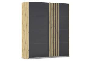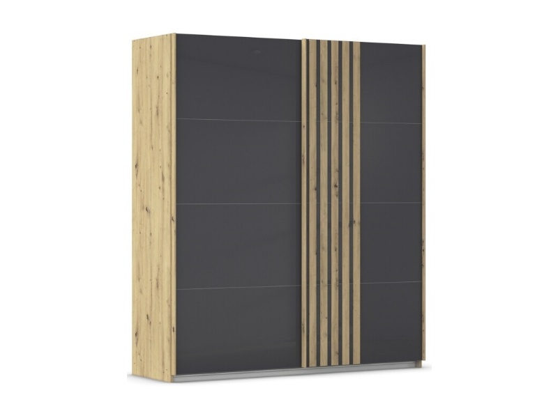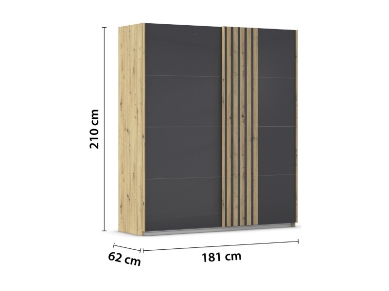 Dulap cu usi glisante MOSBACH 181x210x62cm stejar Artisan/ sticla basalt