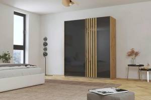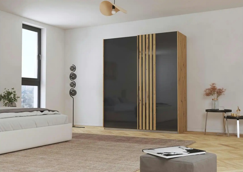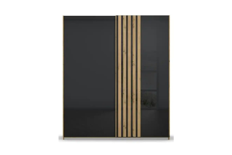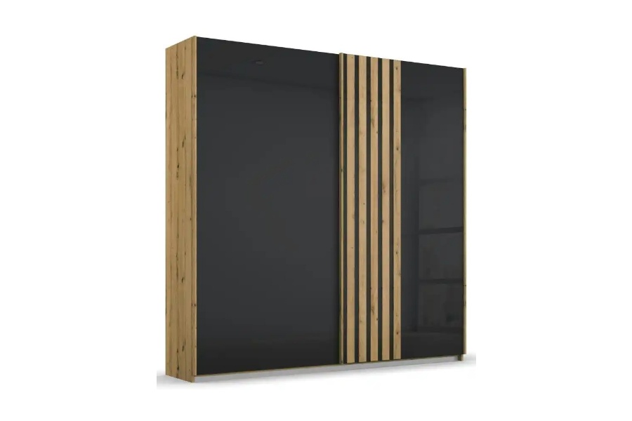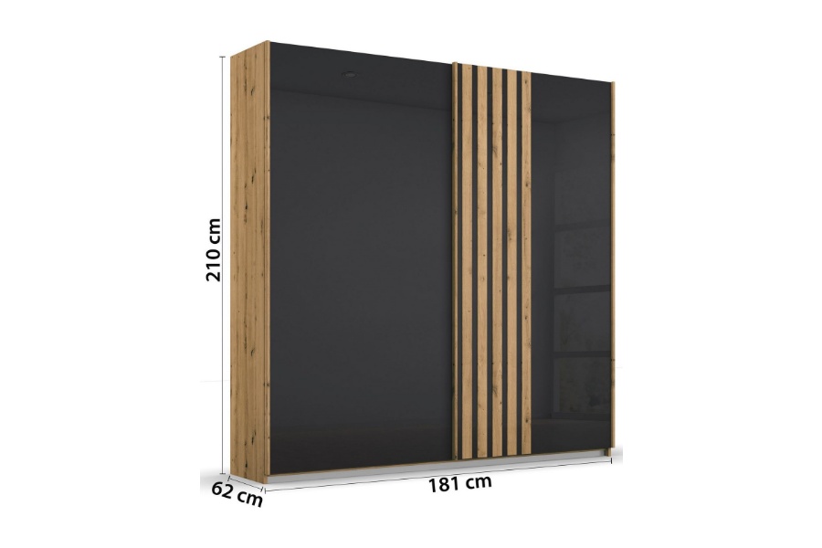 Dulap cu usi glisante MOSBACH 181x210x62cm stejar Artisan/ sticla basalt