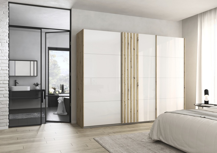 Dulap cu usi glisante MOSBACH 271x210x62cm stejar Artisan/ sticla alba
