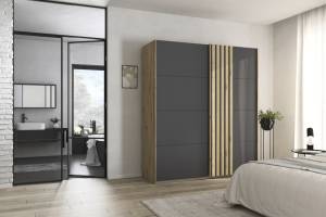 Dulap cu usi glisante MOSBACH 181x210x62cm stejar Artisan/ gri metalic
