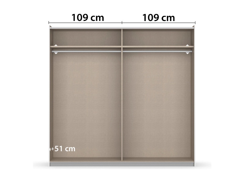 - Dulapul are inclusa 1 polite si 1 bara pentru umeras pentru fiecare compartiment, in total 2 polite si 2 bare pentru umerase de 107x45cm.