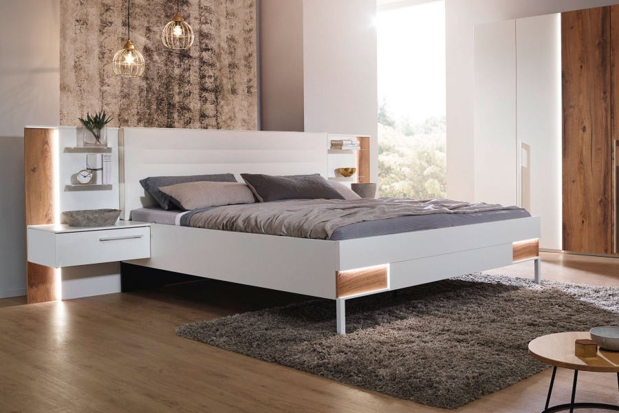 Cadru pat cu led alb mat + stejar atlantic (160x200cm) VALETTA