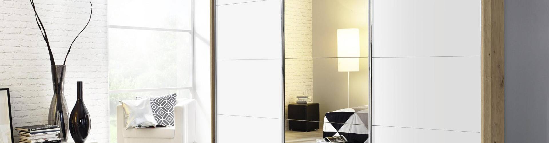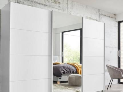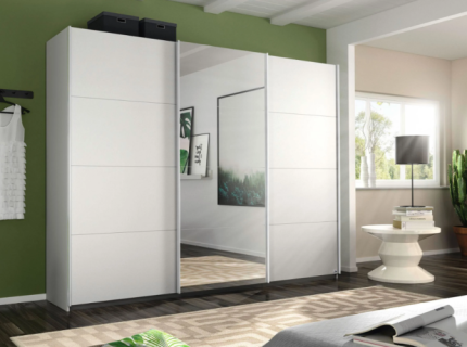 Dulap cu usi glisante KULMBACH 361x229x62cm alb alpin/oglinda configurabil