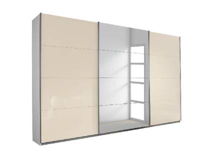 Dulap cu usi glisante KULMBACH 361x229x62cm alb alpin/ sticla champagne-oglinda configurabil
