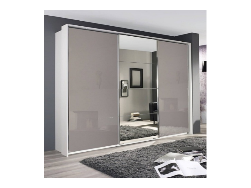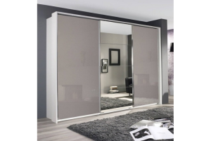 Dulap cu usi glisante KULMBACH 203x210x62cm alb alpin/ sticla fango - oglinda configurabil