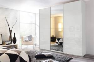 Dulap cu usi glisante KULMBACH 361x229x62cm alb alpin/ sticla alba configurabil